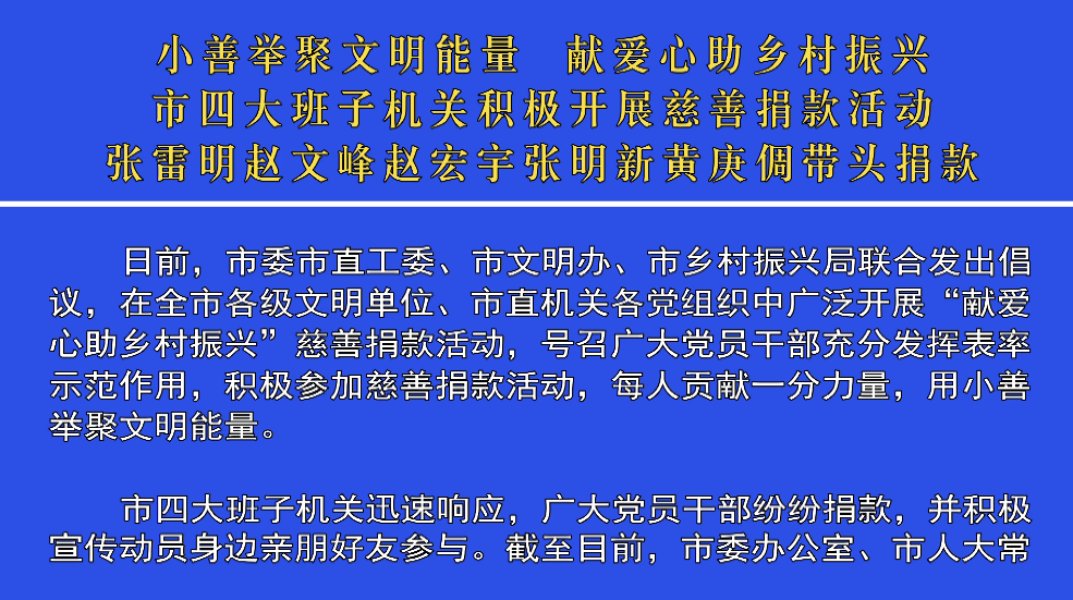 小善舉聚文明能量 獻愛心助鄉(xiāng)村振興 市四大班子機關(guān)積...