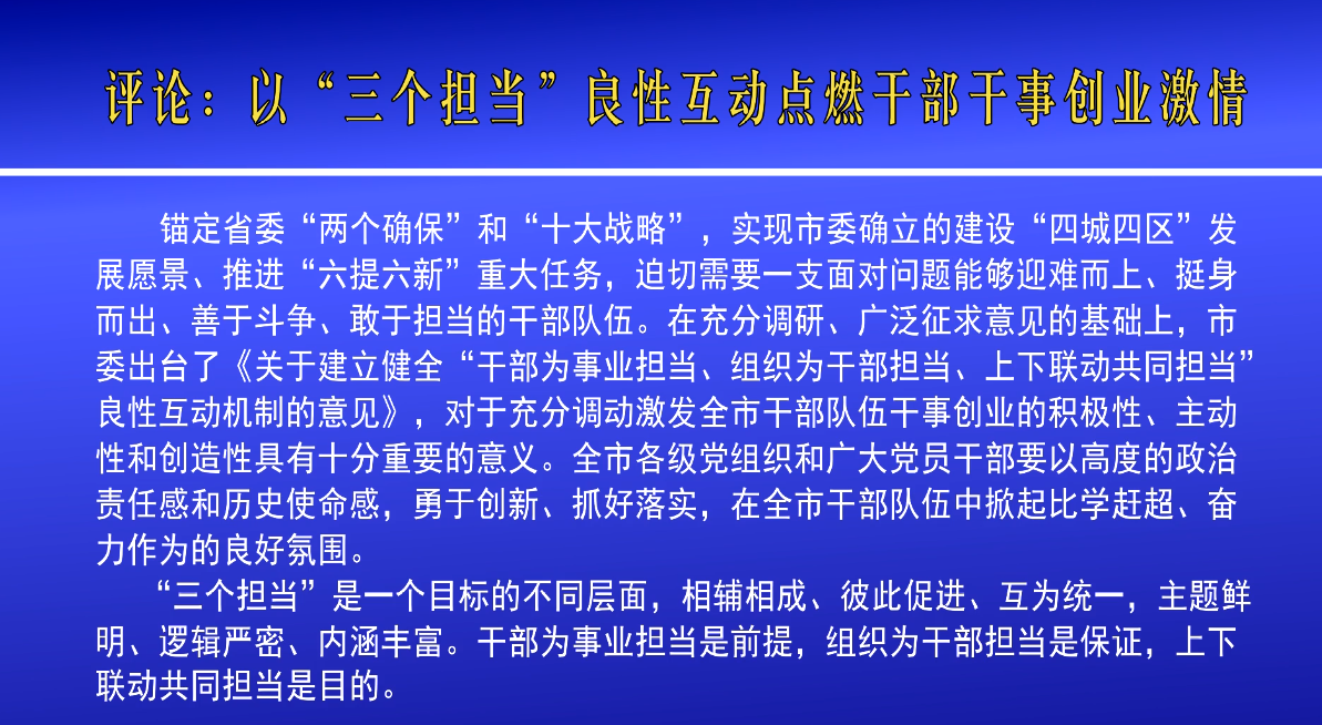 評論:以“三個擔(dān)當”良性互動點燃干部干事創(chuàng)業(yè)激情