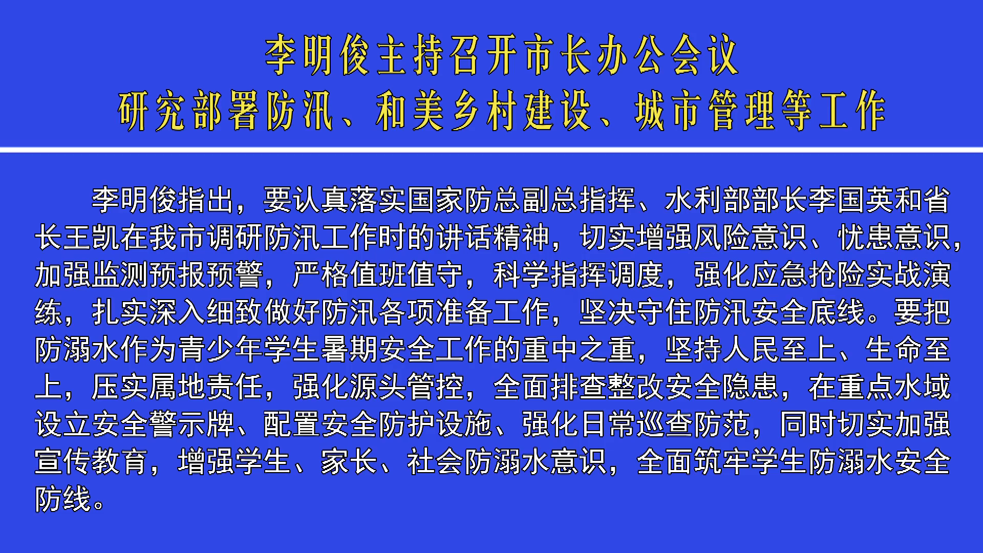 李明俊主持召開(kāi)市長(zhǎng)辦公會(huì)議 研究部署防汛、和美鄉(xiāng)村建設(shè)、城...